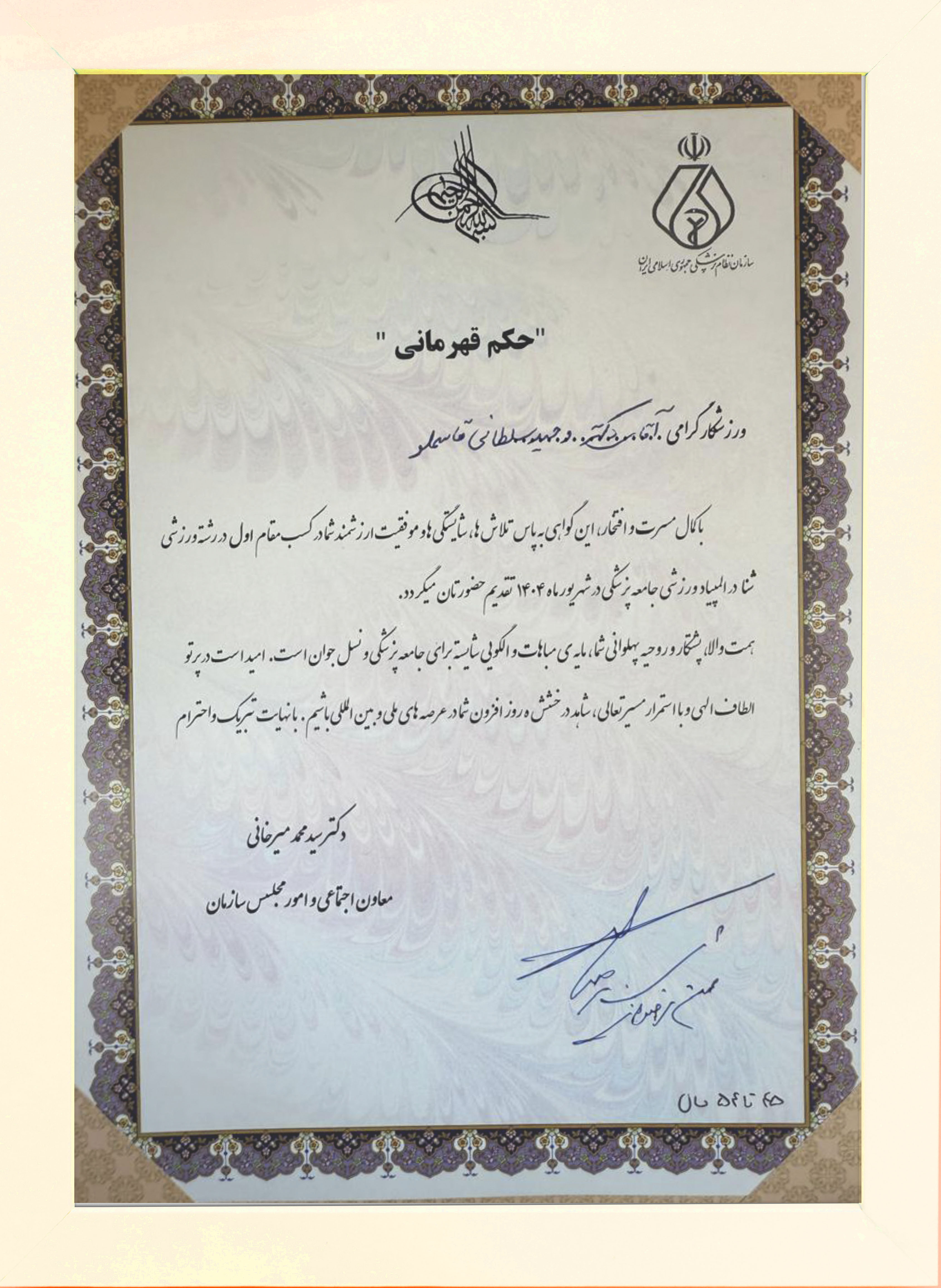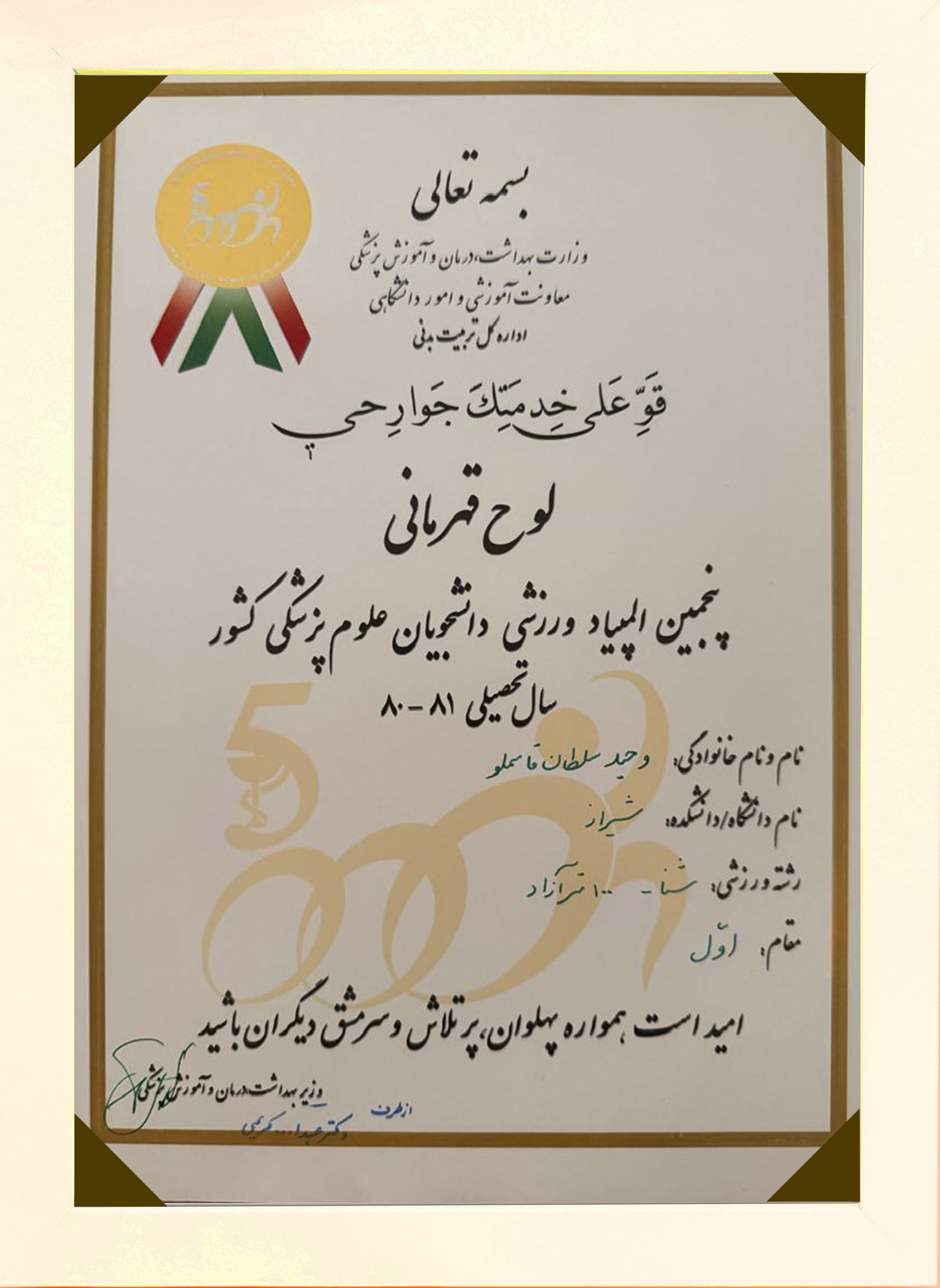مقام های کسب شده توسط دکتر وحید سلطانی